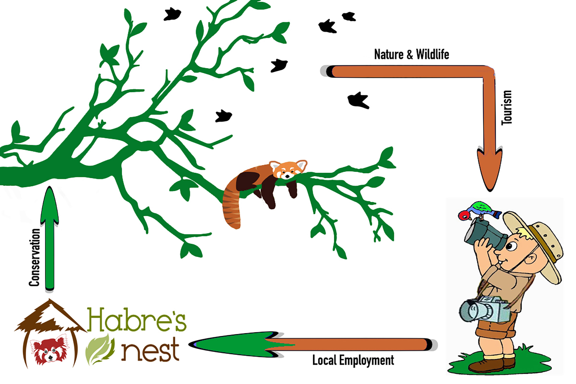 Habre’s Nest is dedicated to the cause of saving the Wild Red Pandas. Our team petrol the forest every day to stop and minimize the Red Panda poaching. We also do other activities like- Dog vaccination, Habitat restoration, Medical camps etc. All of these are funded by Tourism.